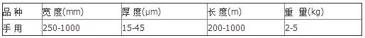 注:特殊優質纏繞膜規格可按要求定做。